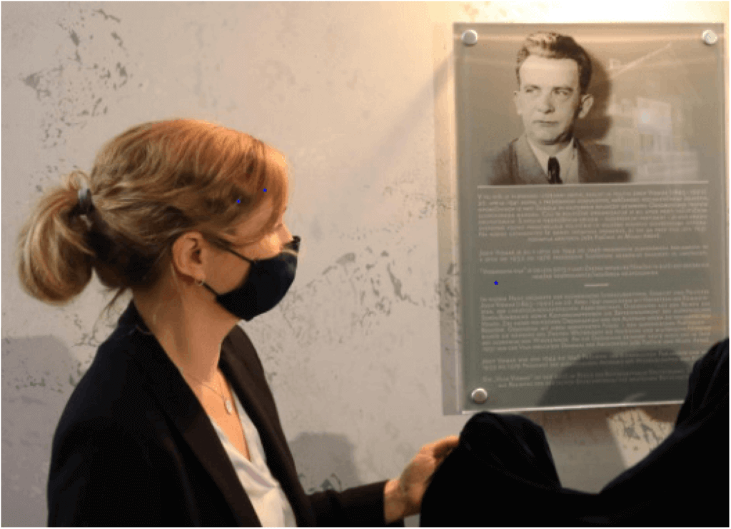 Nemška veleposlanica Natalie Kauther na odkritju spominske plošče.