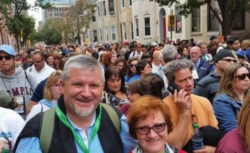 Prvo Svetovno srečanje družin je leta 1993 začel sveti Janez Pavel II., ki ga mnogi imenujejo tudi »Papež družine«, letošnje osmo srečanje družin pa je bilo doslej največje v zgodovini tovrstnih srečanj. Svetovno srečanje družin je sestavljeno iz dveh delov: prvi del je bil Kongres družin in trajal pet dni, drugi del pa je trajal dva dneva in je bil namenjen predvsem srečanju s papežem Frančiškom: koncerti, filmski festival, mnoge predstavitve in pričevanja posameznikov in družin iz raznih koncev sveta … Prvega dela oziroma Kongresa družin se je udeležilo kakih 15.000 udeležencev oziroma delegatov škofovskih konferenc iz več kot 110 držav, drugega – festivalskega – dela, katerega višek je bila v nedeljo 27. septembra slovesna papeževa sveta maša, pa se je udeležilo milijon in pol ljudi. Za naju z ženo so bila vsa ta srečanja velik privilegij: srečati toliko ljudi iz mnogih dežel sveta, spoznati, da jih je veliko – sploh Američanov – , ki tako ali drugače poznajo Slovenijo, ki imajo tu celo svoje korenine, ali pa vsaj poznajo nekoga, ki iz Slovenije izhaja. Nikoli ne bova pozabila nepreglednih množic, ki so se zbirale na trgu Benjamina Franklina, da bi prisluhnile papeževim besedam ali v živo slišale peti Aretho Franklin, Andrea Boccelia, Jackie Evancho … Nikoli ne bova pozabila skoraj pet urnega čakanja v vrsti pred varnostnim pregledom – predvsem naju je nagovorila mirnost in strpnost ljudi, nobenega prerivanja ni bilo, nobenega nerganja, otroci v vozičkih ali nahrbtnikih, veliko pogovora z ljudmi, ki so prišli od blizu in daleč … Nepopisno!